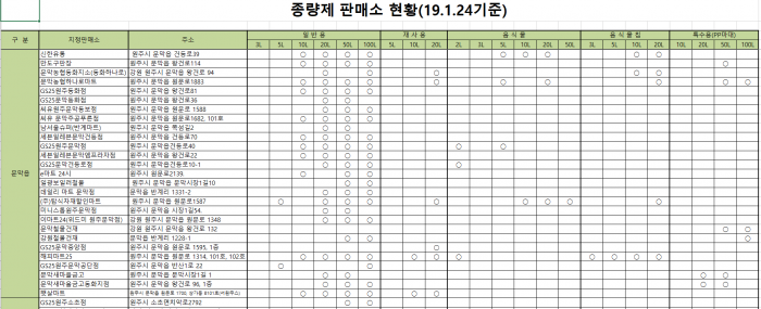 원주시 쓰레기 종량제 봉투, 음식물 쓰레기 봉투, 종량제 마대자루, 음식물칩 판매하는 곳 정리한 것입니다.
