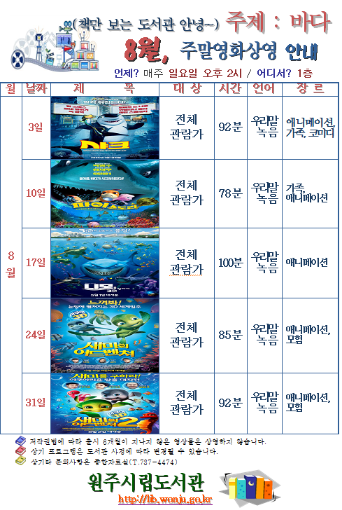 원주시립도서관 주말영화상영 운영 안내(8월)