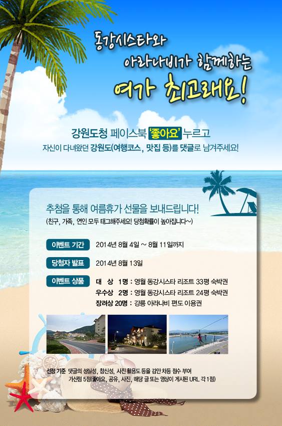 우수상 2명 : 영월 동강시스타 24평 숙박권