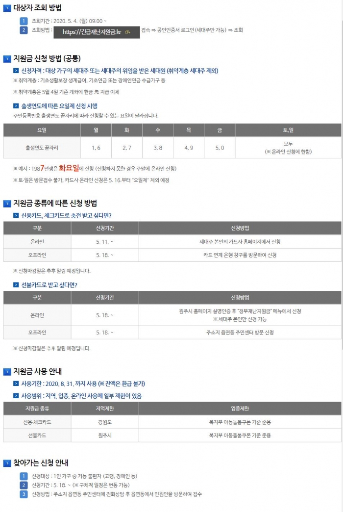 국가에서 긴급재난지원금을 전국민 대상으로 지급한다고 발표는 했는데 실제 지원금을 수령하는 사람은 세대주만 가능합니다.세대분리가 되지 않은 상태에서 별거 등으로 세대주와 동거하고 있지 않은 구성원은 차후에 이의제기로 별도 신청 가능하다고 합니다.5월 4일 1차 긴급재난지원금이 지급 됐는데 대상은 세대 구성원이 모두 기초연금, 장애연금, 기초생활보장 생계급여 등 수혜를 받고 있어야 합니... 더 보기